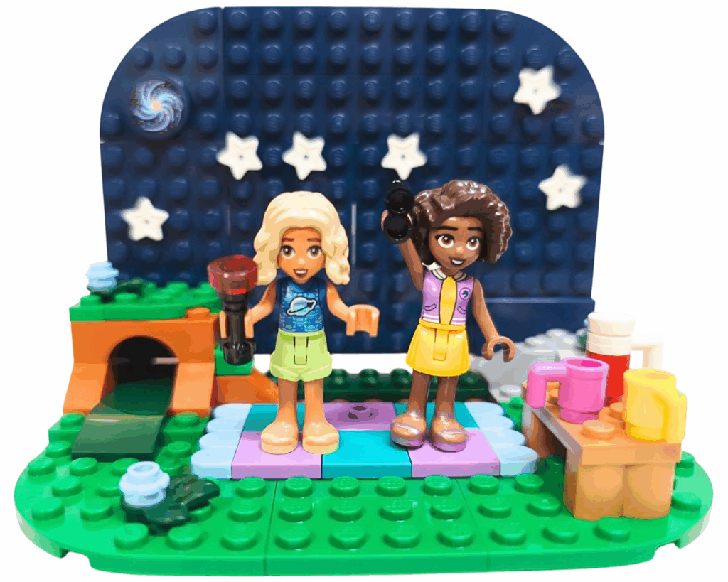 望遠鏡や双眼鏡🔭を使って星座を見つけたり、星や惑星のデコレーションで背景を飾ったりと、想像の世界が広がる遊び方ができるの。夜空を眺めながら、ふたりでどんなお話をしているのかしら…って、想像するだけで楽しくなってきちゃう♪