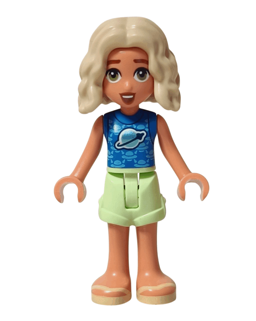 ✅ 黄緑色のショートパンツは夏らしくて、アクティブな雰囲気がノヴァによく似合っているの。