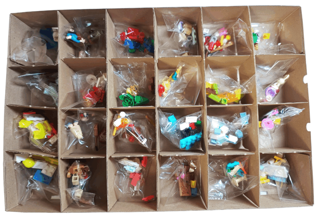 箱を引き出してみたら、24個の小さなミニセットが、それぞれ袋に分かれて入っていたの🎁。ひとつひとつ開けていくのが、とっても楽しみになるわ。