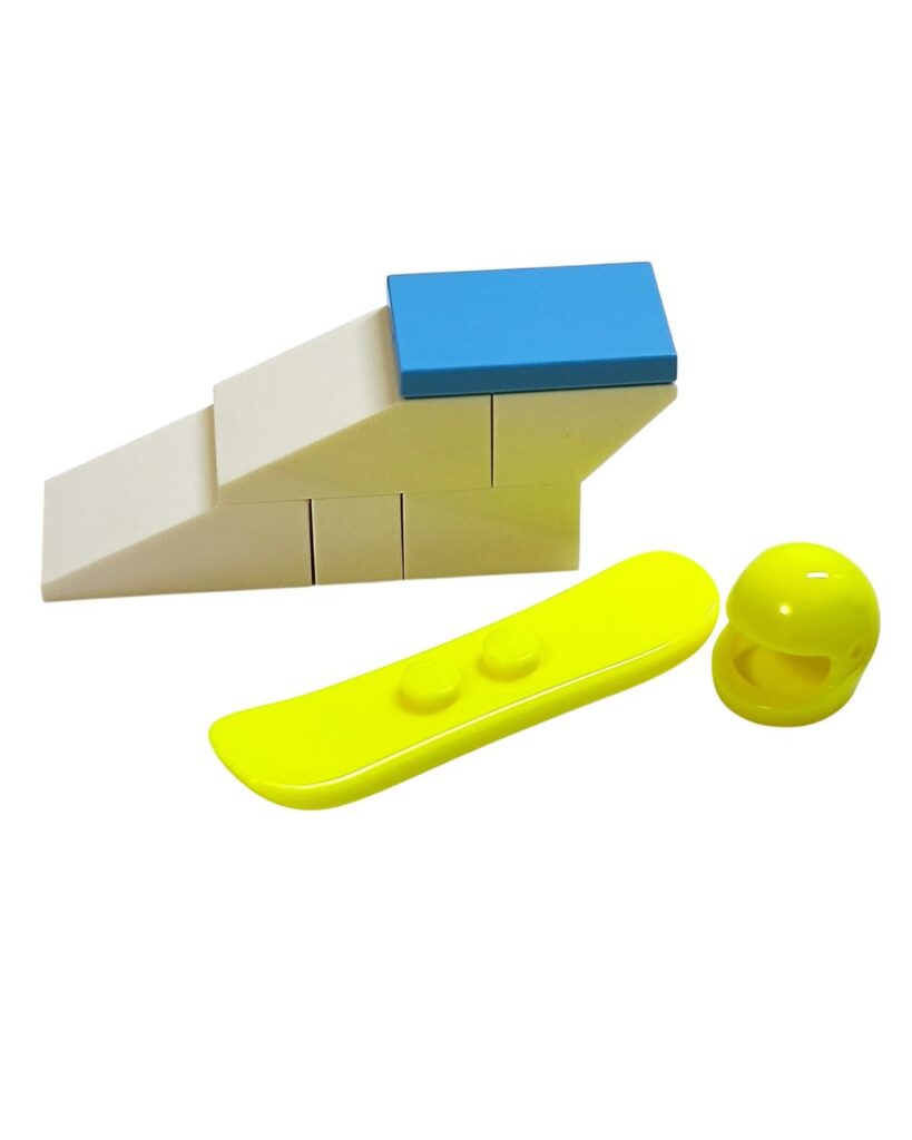 組み立ててみると、小さな滑り台みたいなセットができたわ。これでスノボの練習ができそうね。とってもワクワクしちゃうわ。