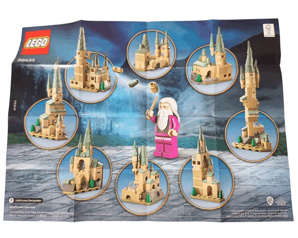 この「ホグワーツ城<ミニセット>(30435)」の組み立て説明書には、お城モデルのひとつがとってもわかりやすく紹介されているの✨
