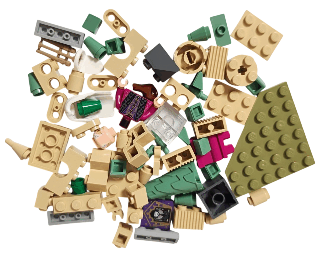 このセットに入っているパーツはね、ホグワーツ城らしいおなじみの配色がメインになっていて、見ているだけで、あの荘厳な雰囲気がふわっとよみがえってくるの✨