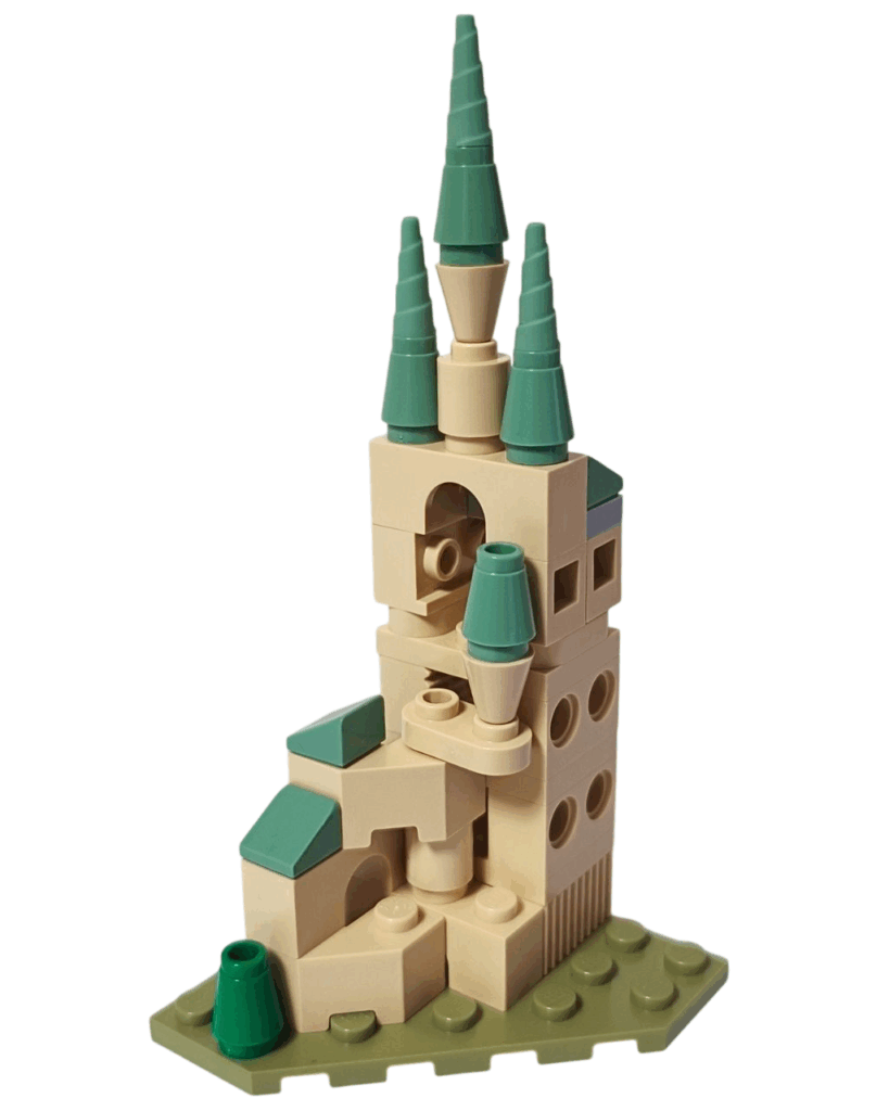 ちいさな塔やアーチのパーツが積みあがっていくたびに、「あっ、この部分はあの場所かも…!」って想像がふくらんで、ほんの数ステップでも魔法の世界がぐっと近づいてくるのよね🏰