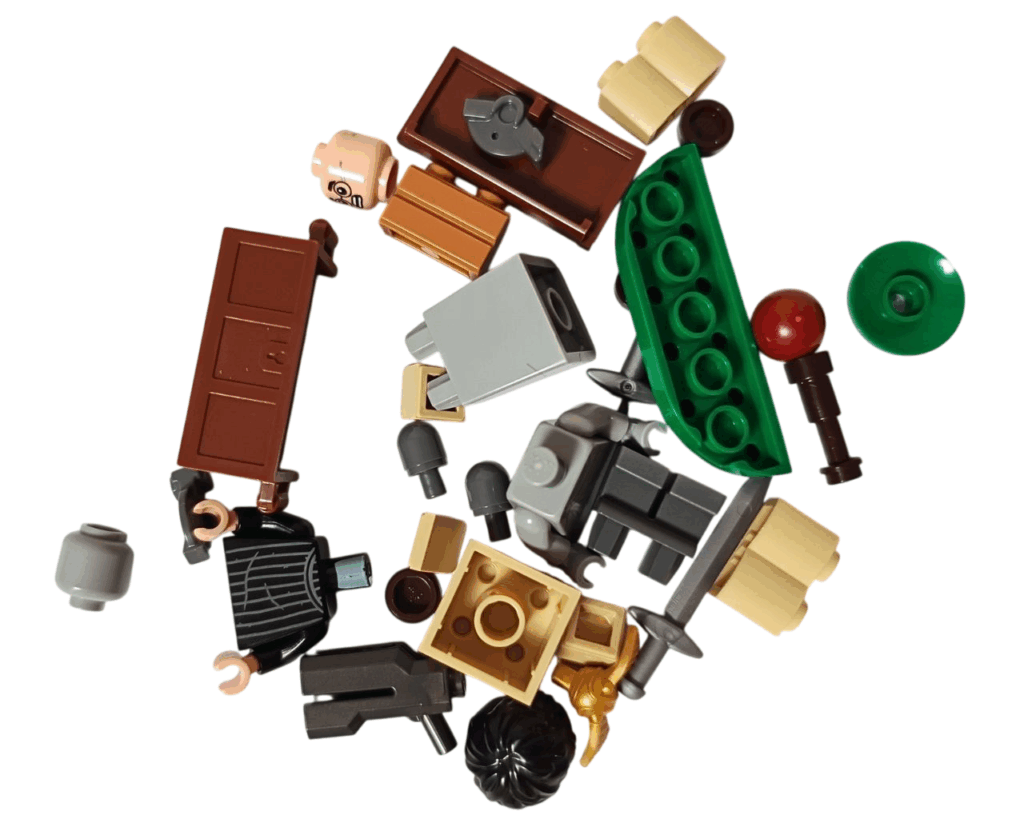 ミニフィグや小さな装備品たちも、しっかり主役に見える配置になっていて、見ているだけで物語が浮かんでくるのが素敵ね。