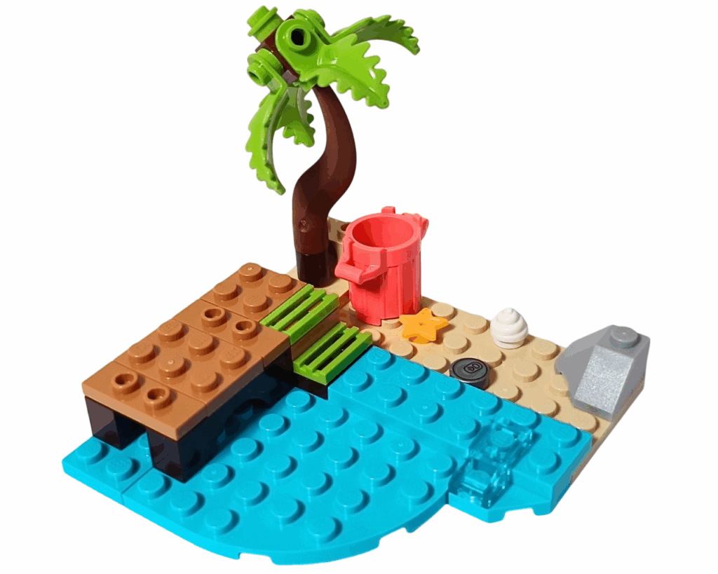 組み立てのスタートは、あたたかい砂の色をしたプレートの上に、海辺の景色をつくるところからはじまるの♪