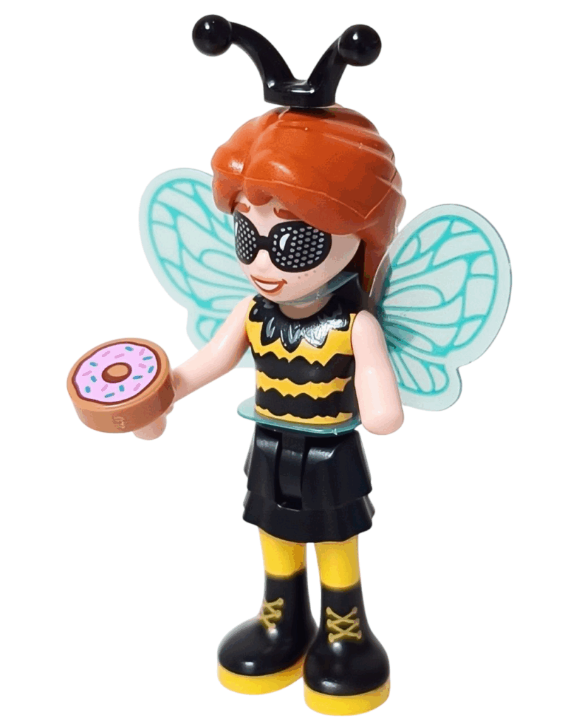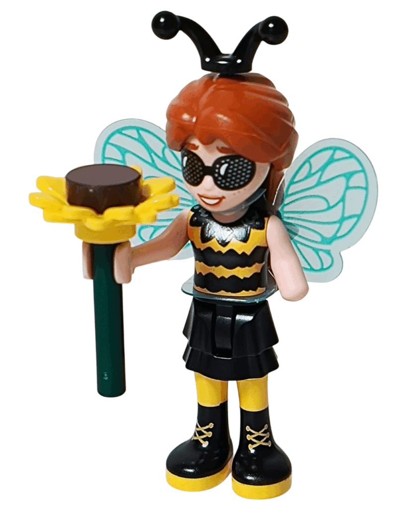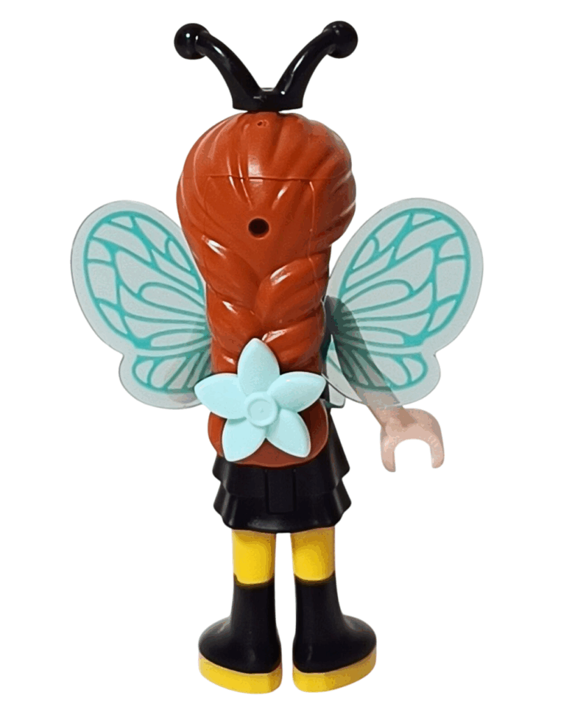 ✅ 背中にはミントグリーンの透け感ある羽が。光を受けるときらきらして、まるで本物の蜂みたいに舞い上がりそうなのよ✨