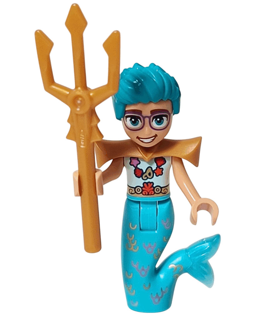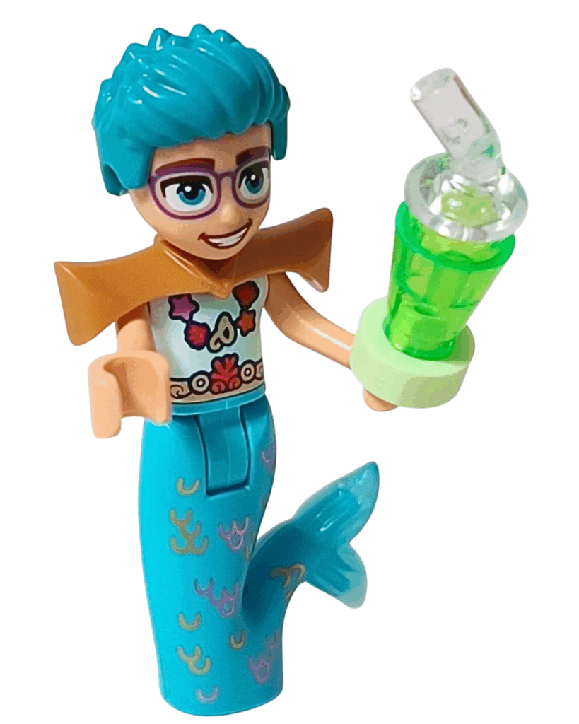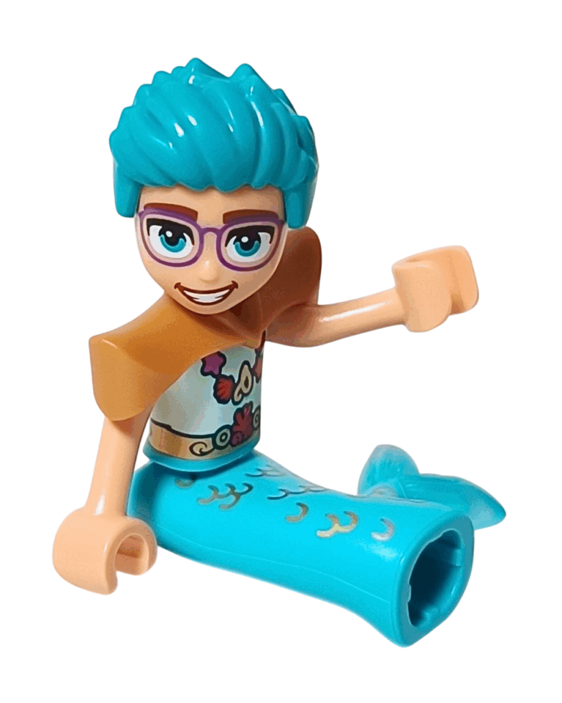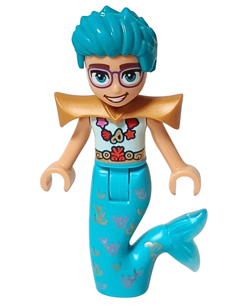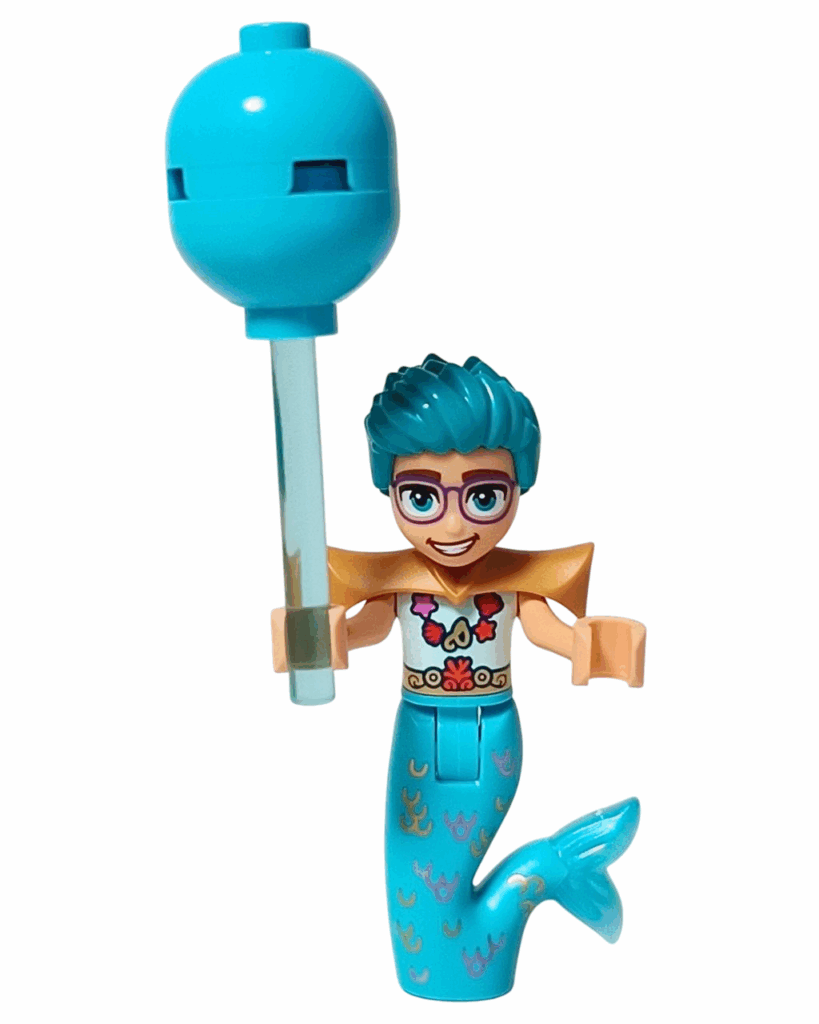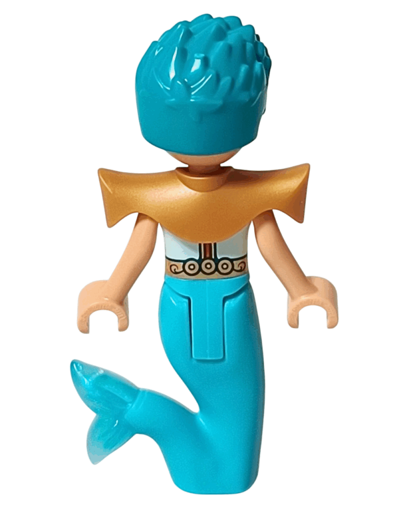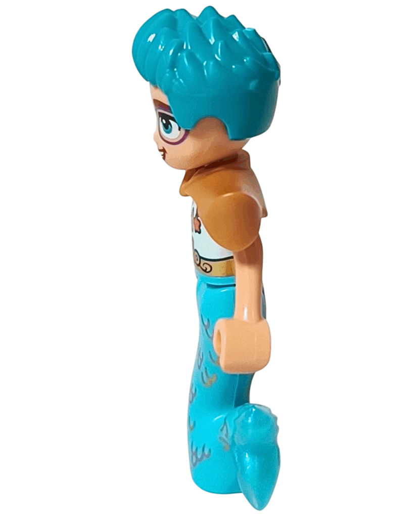 ✅ 全身を包む鮮やかな明るい水色のマーマンテイル。波や珊瑚の模様が入っていて、まるで海の世界そのもの🐚