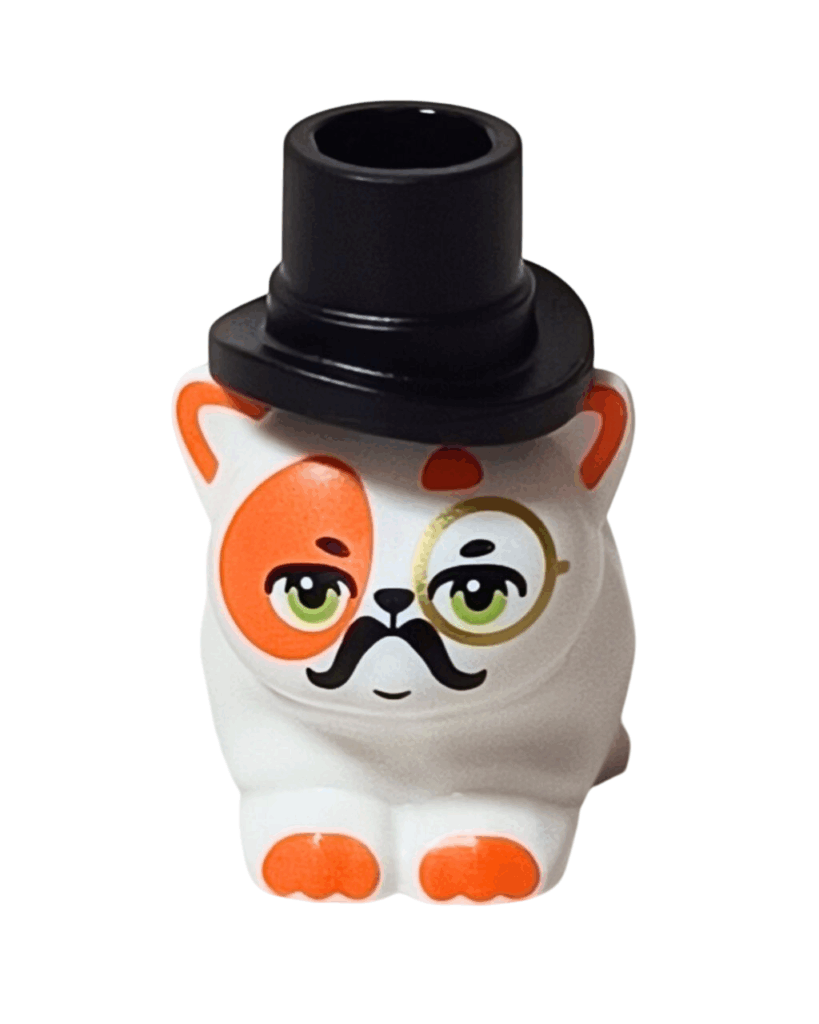 ✅ グリーンとオレンジの瞳が特徴的で、表情にユーモアとおしゃれ感をプラス👀