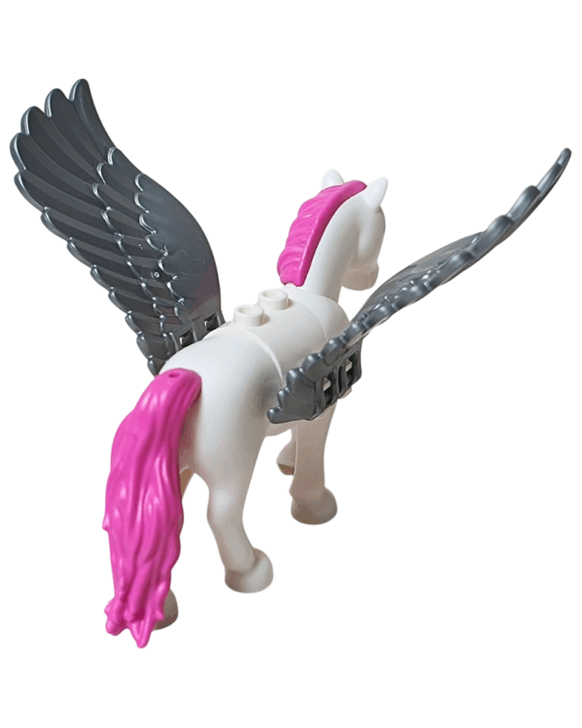 ✅ ピンクのたてがみとしっぽが印象的。純白のボディとのコントラストがとっても華やか💗