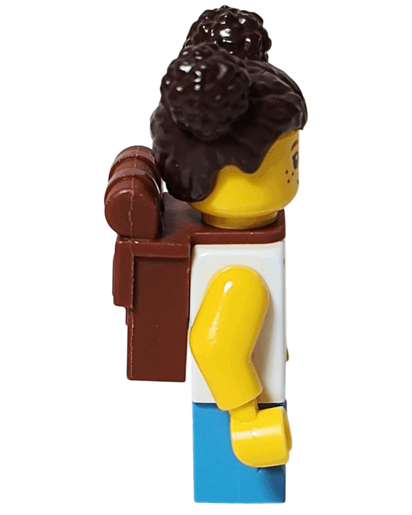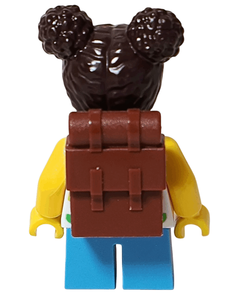 ✅ 茶色のリュックにはお菓子や小道具がぎっしり。小さな冒険の準備をしっかり整えているのよ🎒